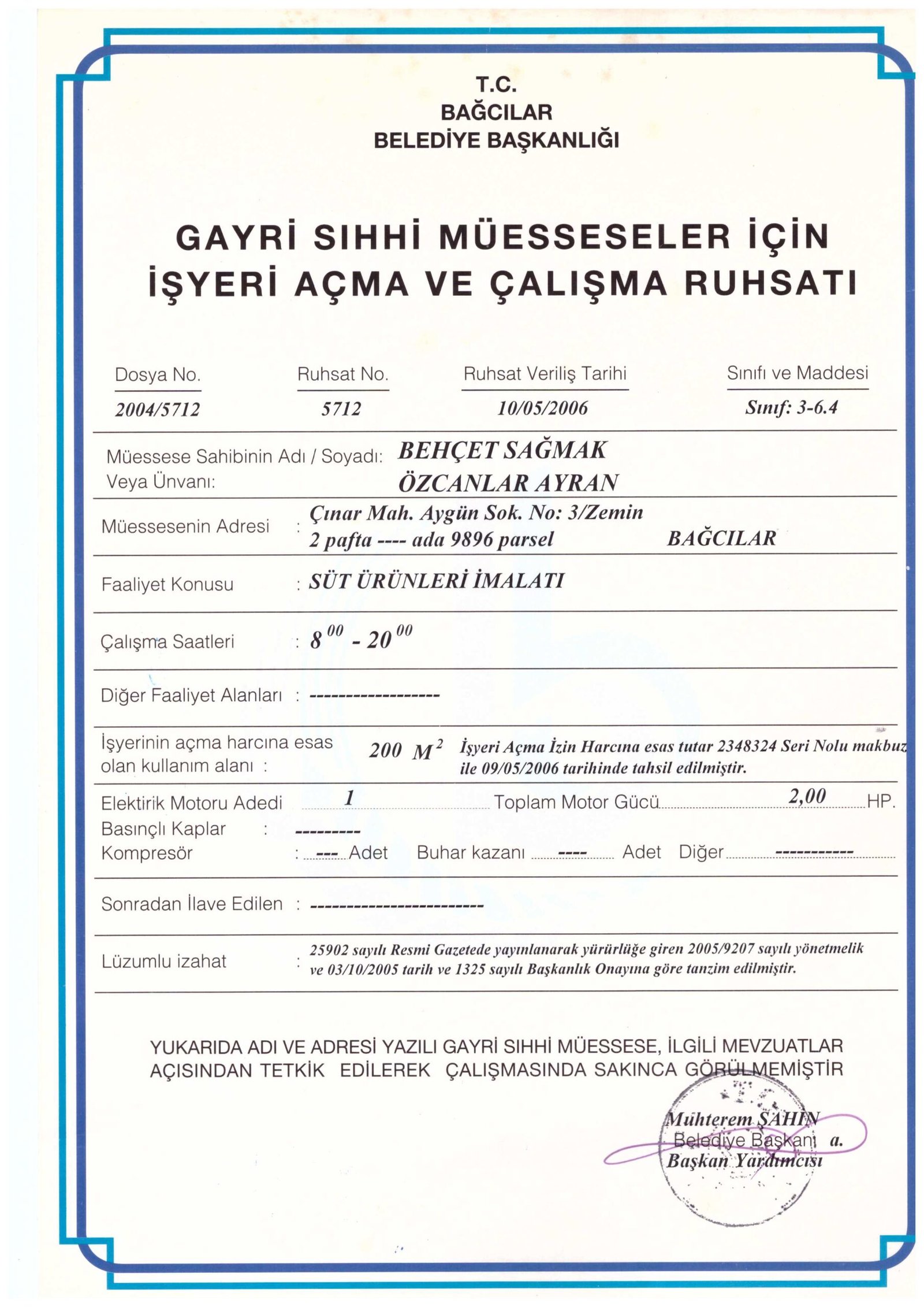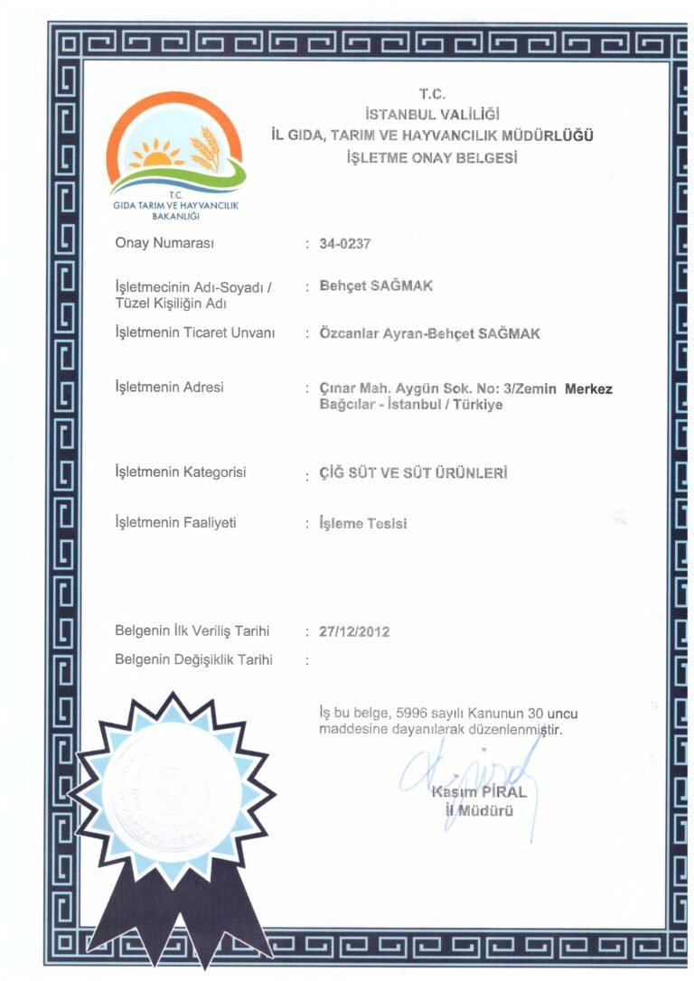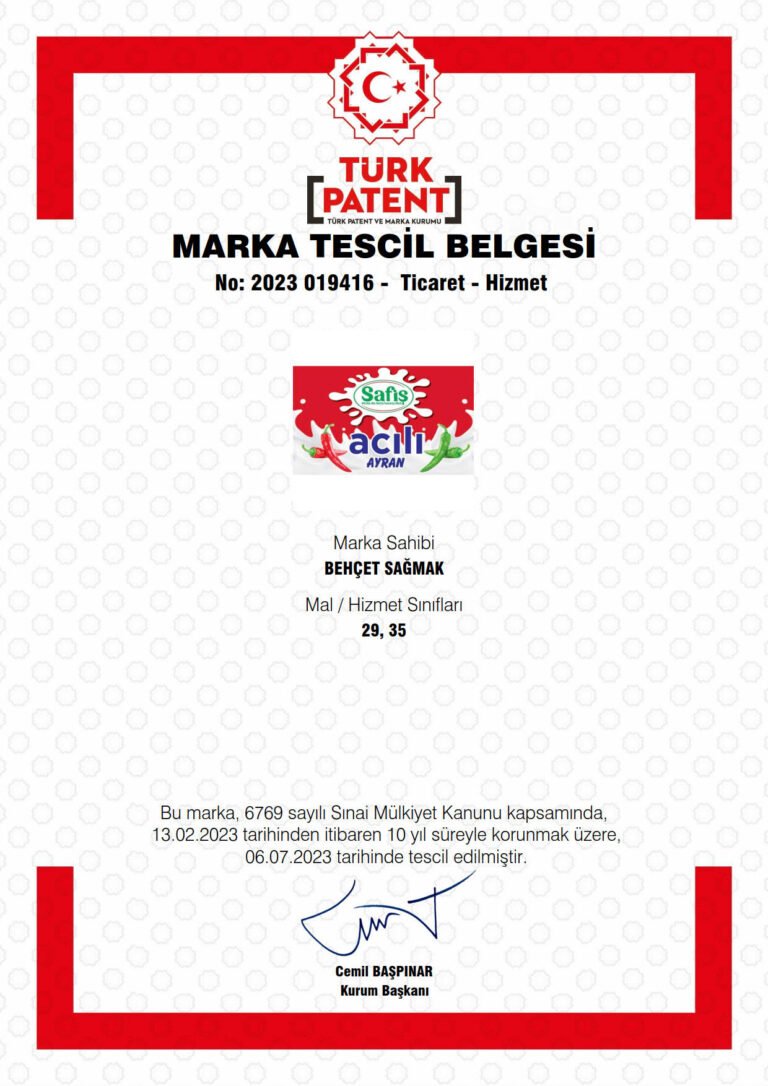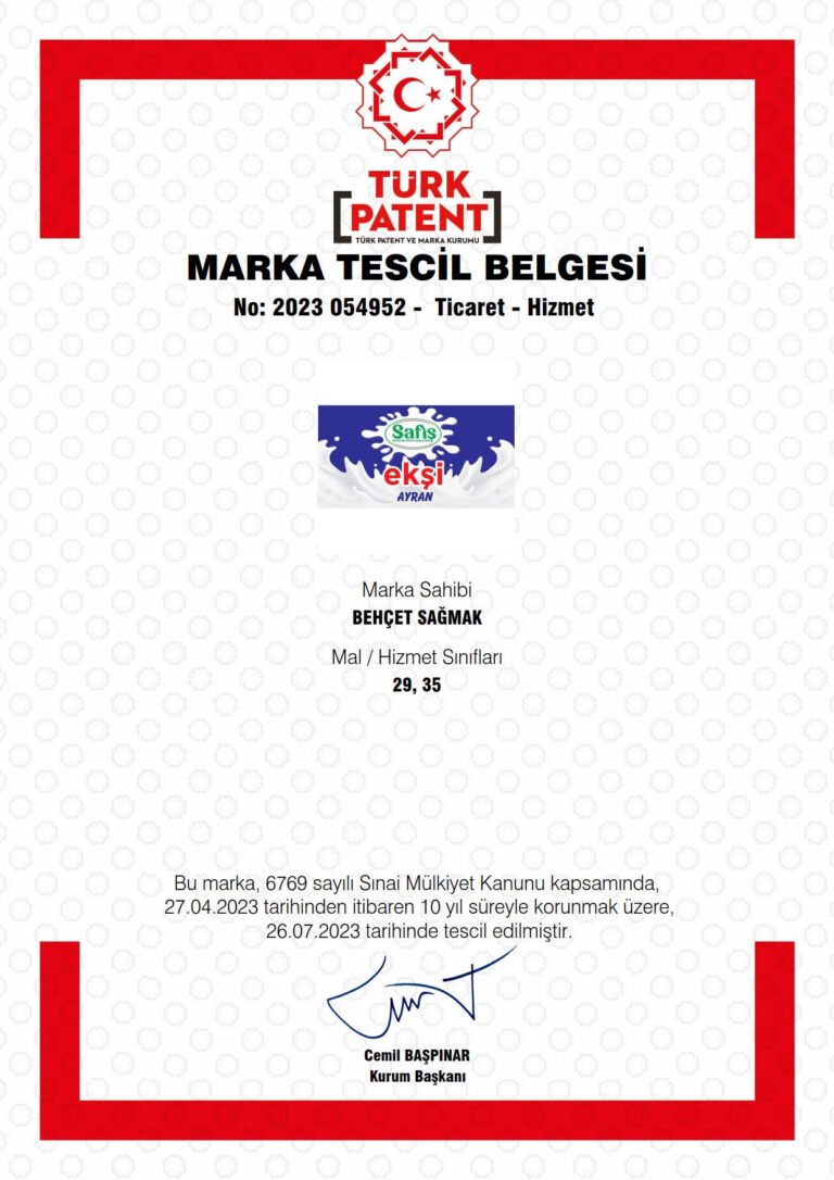 EKŞİ AYRAN MARKA TESCİL BELGESİ